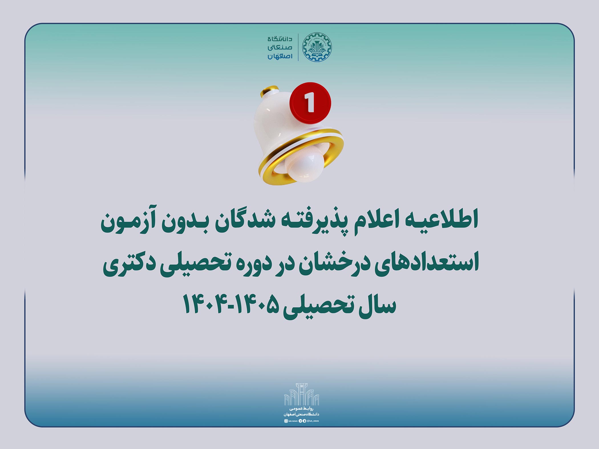 اعلام اسامی نهایی پذیرفته شدگان بدون آزمون- استعدادهای درخشان - دانشگاه صنعتی اصفهان 1404