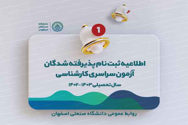 اطلاعیه ثبت نام پذيرفتهشدگان آزمون سراسری کارشناسی سال 1402 دانشگاه صنعتي اصفهان