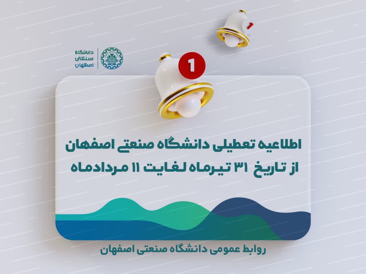 اطلاعیه تعطیلی دانشگاه صنعتی اصفهان از تاریخ ۳۱ تیرماه لغایت ۱۱ مردادماه