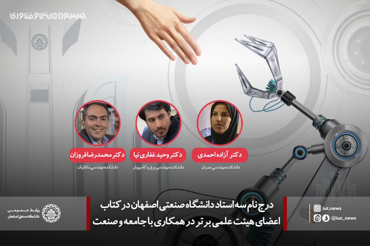 درج نام سه استاد دانشگاه صنعتی اصفهان درکتاب اعضای هیئت علمی برتر در همکاری با جامعه و صنعت