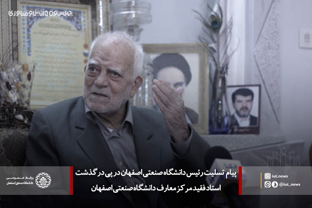 پیام تسلیت رئیس دانشگاه صنعتی اصفهان درپی درگذشت استاد فقید و رئیس اسبق مرکز معارف دانشگاه