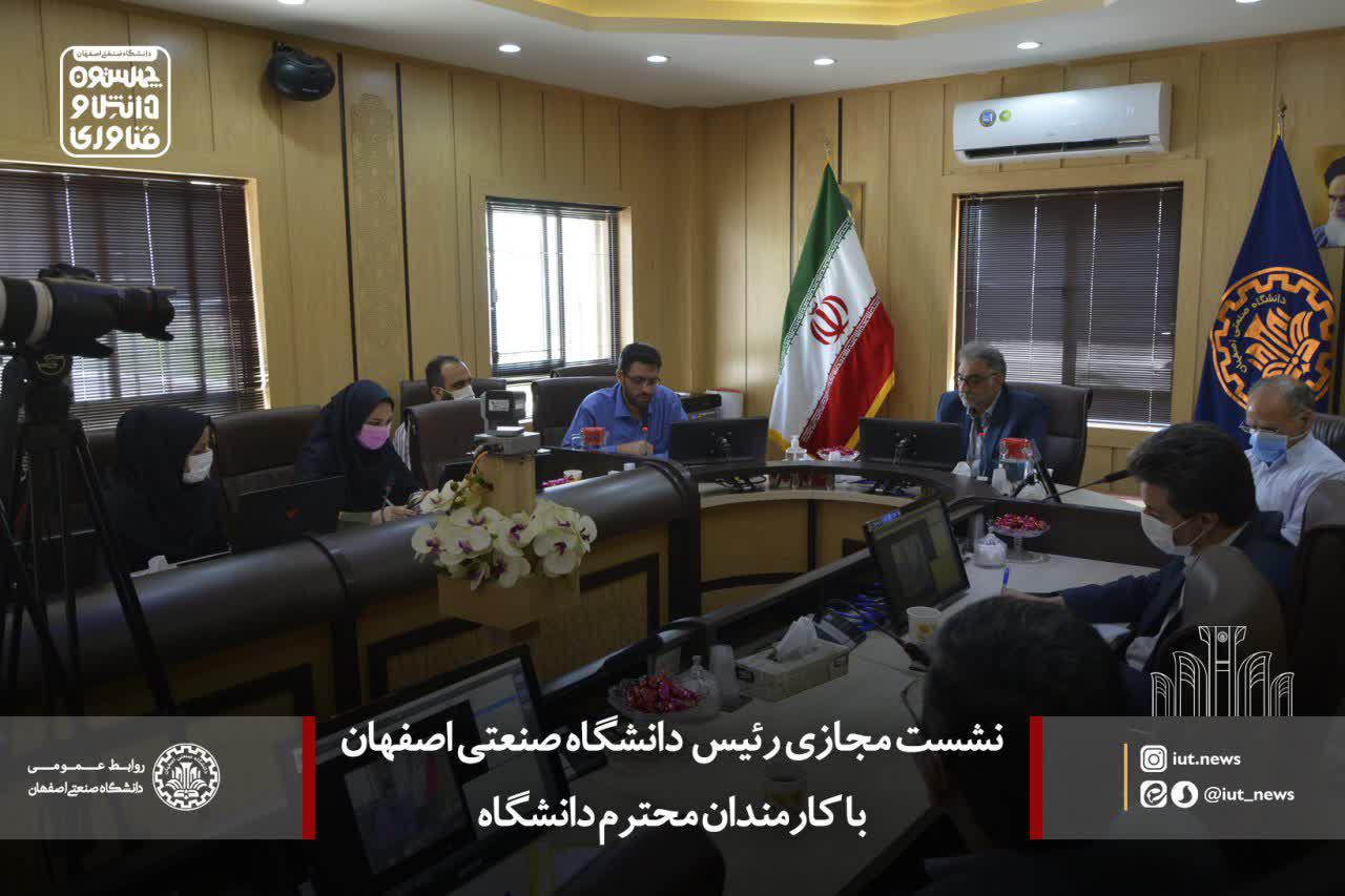 رئیس دانشگاه صنعتی اصفهان در ادامه دیدار با اقشار مختلف دانشگاهیان، امروز شنبه در گفتگوی مجازی با كارمندان دانشگاه، ضمن تقدیر از تلاشهای کارکنان دانشگاه در ایام کرونا، ضرورت تشکیل این جلسه را بهبود شرایط دانشگاه با بهرهمندی از نظرات کارکنان دانست.