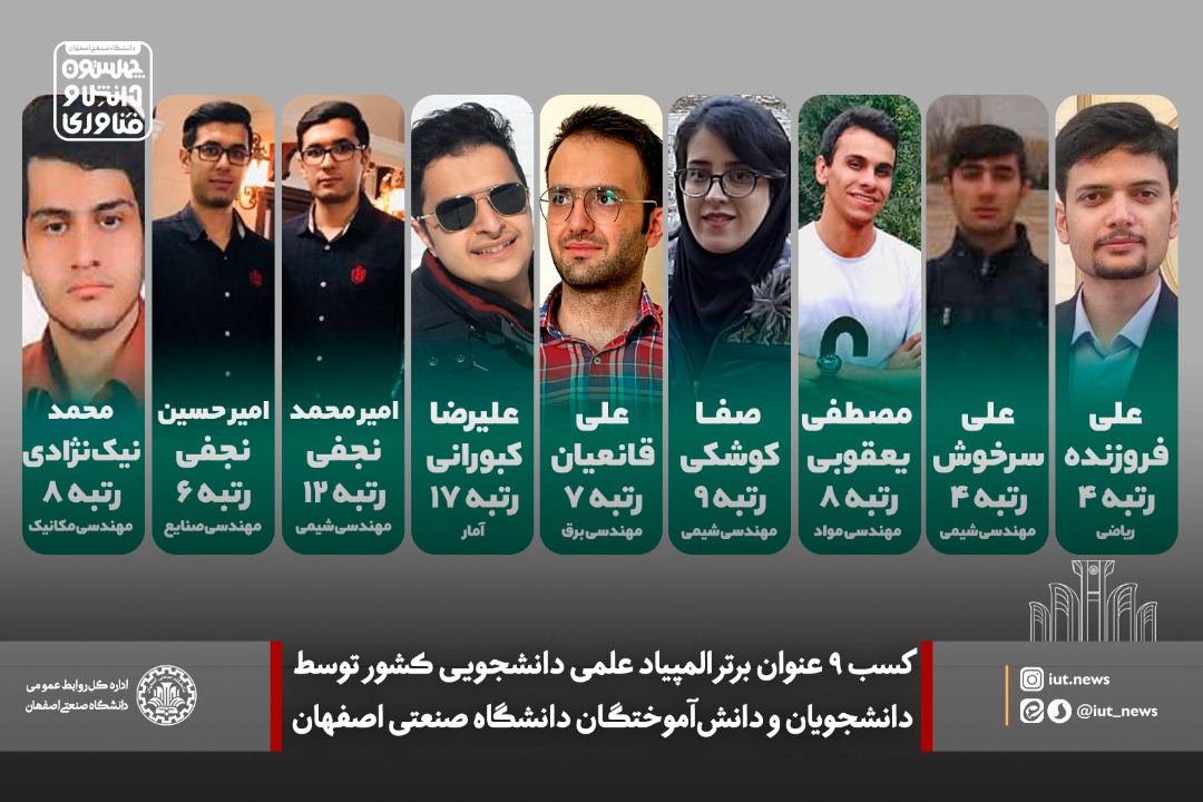 کسب 9 عنوان برتر المپیاد علمی دانشجویی کشور توسط دانشجویان و دانش آموختگان دانشگاه صنعتی اصفهان