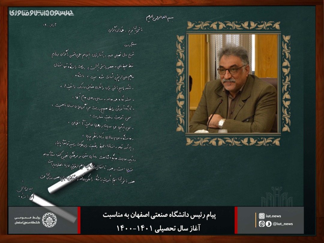 پيام رئيس دانشگاه صنعتي اصفهان به مناسبت آغاز سال تحصيلي 1401-1400