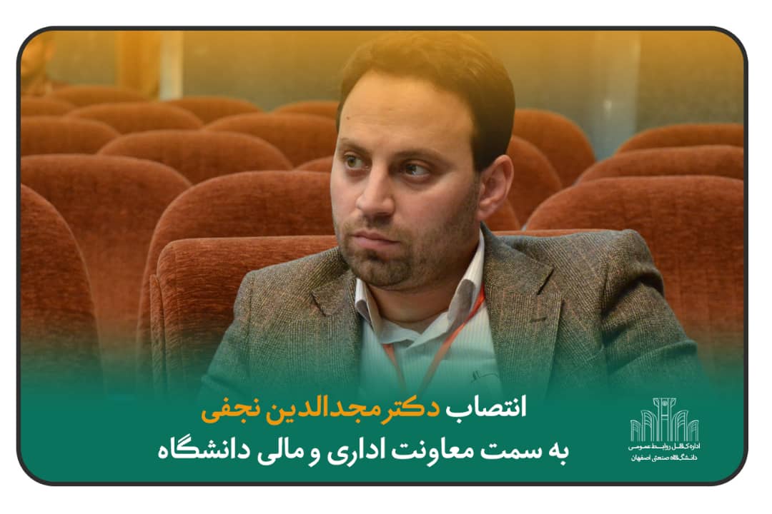 انتصاب دكتر مجدالدين نجفي به سمت معاون اداري و مالي دانشگاه صنعتی اصفهان