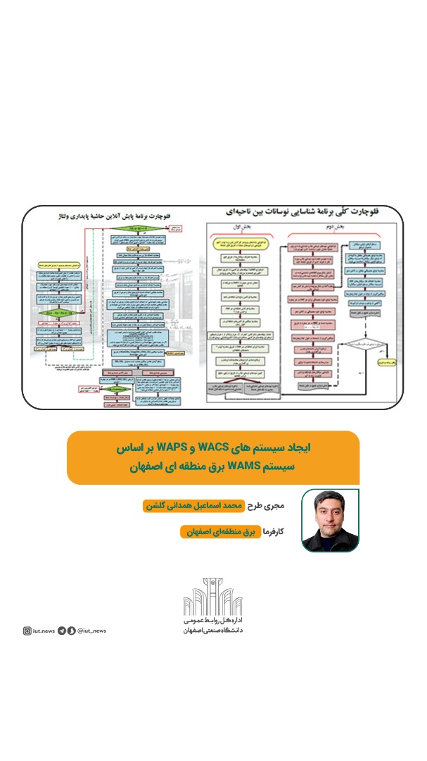 ایجاد سیستم های WACS و WAPS بر اساس سیستم WAMS برق منطقه ای اصفهان با مديريت دكتر محمد اسماعيل همداني گلشن عضو هیئت علمي دانشكده مهندسي برق و كامپيوتر طرح برگزیده دیگر دانشگاه صنعتی اصفهان است.