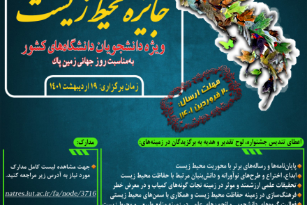شايان ذكر است دانشجويان و دانش آموختگان دانشگاه¬ها مي توانند آثار خود را تا ۲۰ فروردین ۱۴۰۱ به آدرس الکترونیک environmentalawardiut@gmail.com ارسال نموده و برای اطلاع از مدارک مورد نیاز و زمان و نحوه برگزاری به نشانی زیر مراجعه کنند.