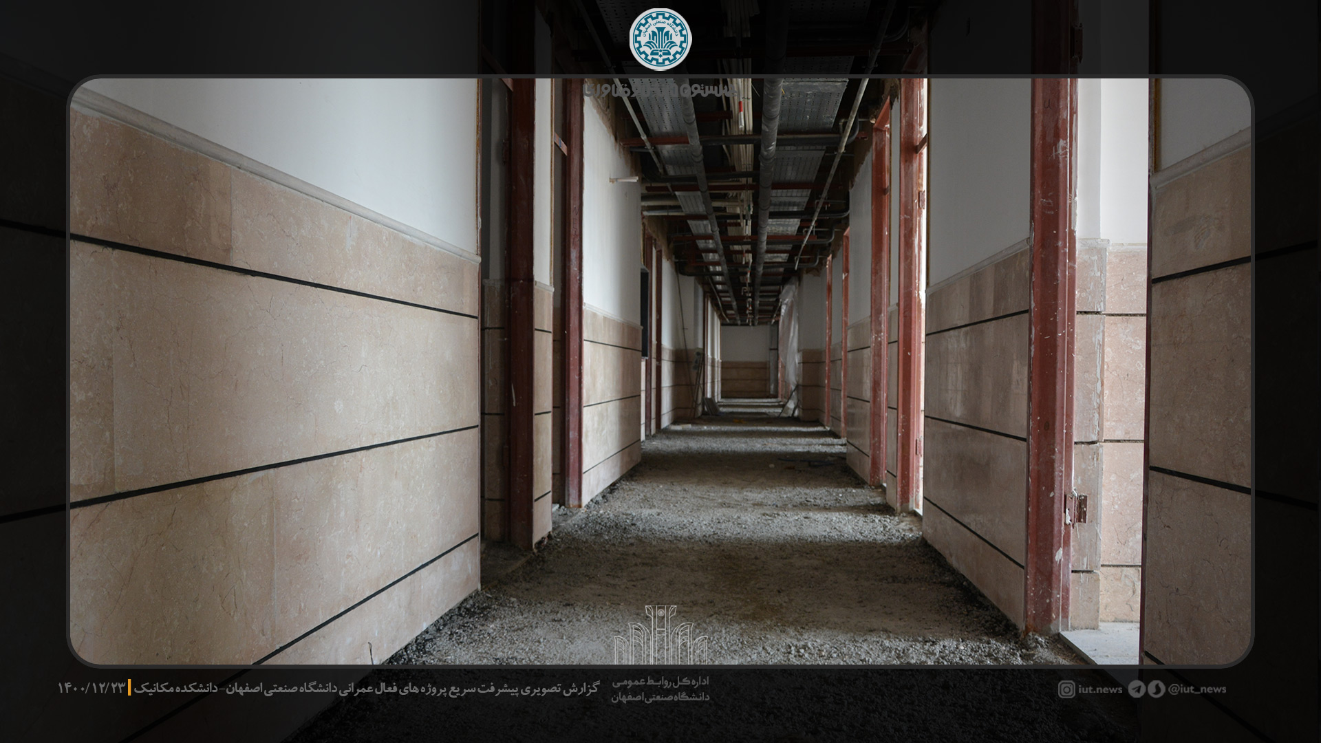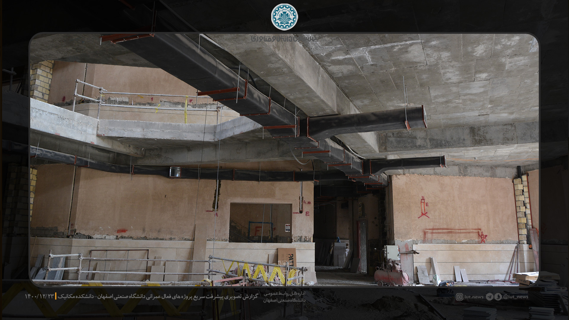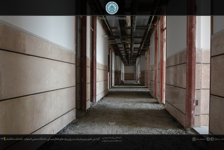 مدیر دفتر فني و نظارت بر طرح هاي عمراني دانشگاه صنعتي اصفهان روند ساخت و ساز را در روزهاي پايان سال مطلوب دانست و خاطر نشان كرد: در حال حاضر عملیات اجرایی سنگ فرش کف راهروها، تست و عایق کاری لوله های تاسیسات مکانیکی، تکمیل کانال های تهیه هواي مطبوع و عایق های آن در دست اقدام می باشد.