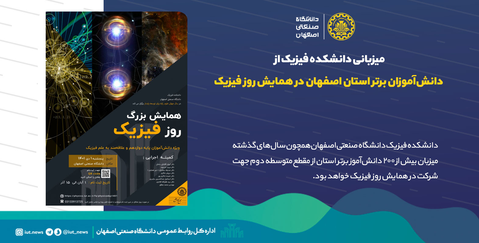 دانشکده فیزیک دانشگاه صنعتی اصفهان اول دیماه، همزمان با روز جهانی فیزیک در سال جهانی علوم پایه، میزبان دانشآموزان مستعد و برتر این حوزه خواهد بود.