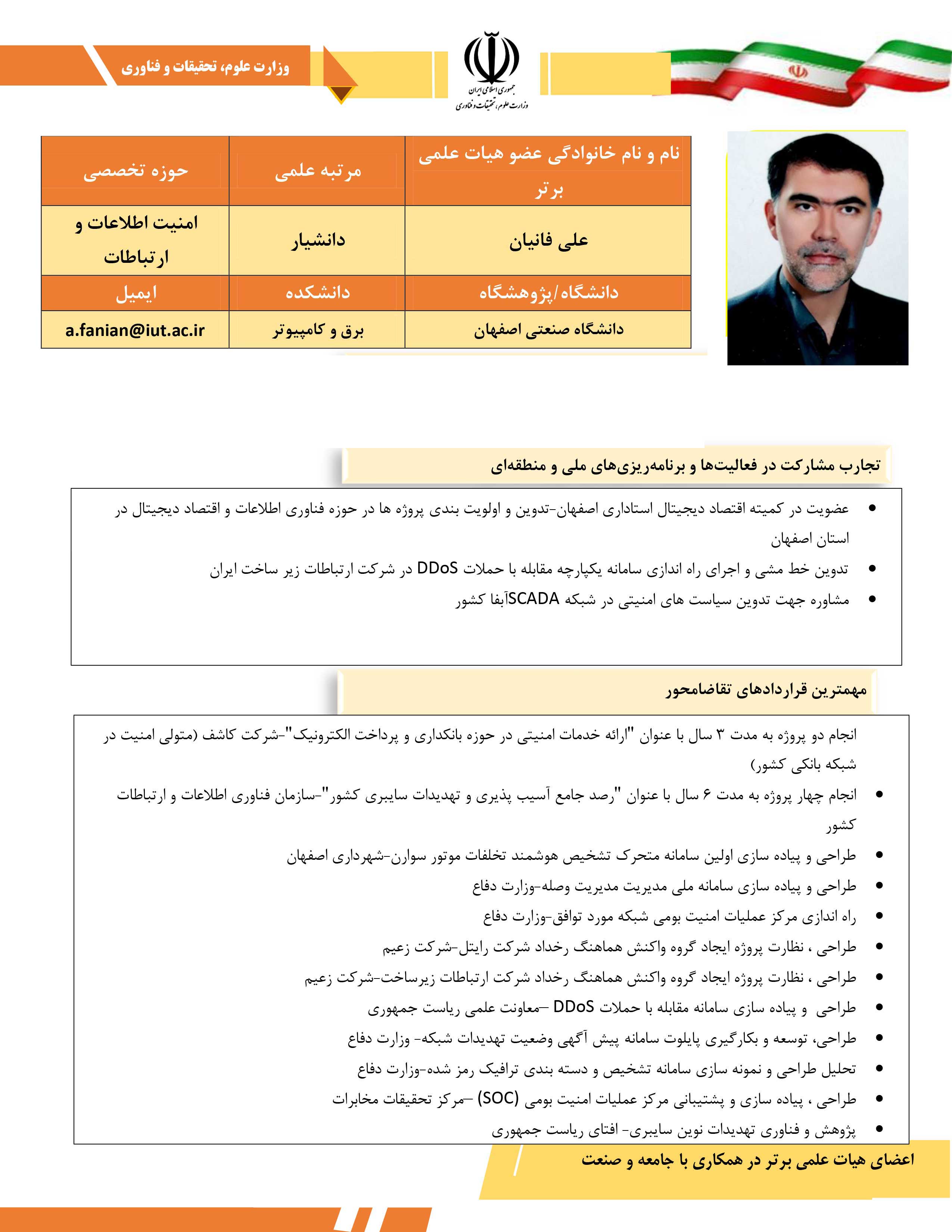 دکتر علی فانیان ، عضو هیئت علمی دانشکده مهندسی برق و کامپیوتر، در حوزه تخصصی امنیت اطلاعات و ارتباطات ، دکتر مریم حسنوند، عضو هیئت علمی دانشکده فیزیک در حوزه تخصصی فیزیک هسته ای و دکتر علی نیکبخت در حوزه تخصصی علوم باغبانی و فضای سبز سه عضو جامعه علمی دانشگاه صنعتی اصفهان هستند که خدمات و فعالیت های ارزنده ایشان در کتاب برگزیدگان سال 1401 معرفی شده است.