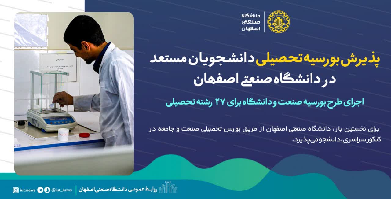 برای نخستین بار، دانشگاه صنعتی اصفهان از طریق بورس تحصیلی صنعت و جامعه در کنکور سراسری، دانشجو میپذیرد.