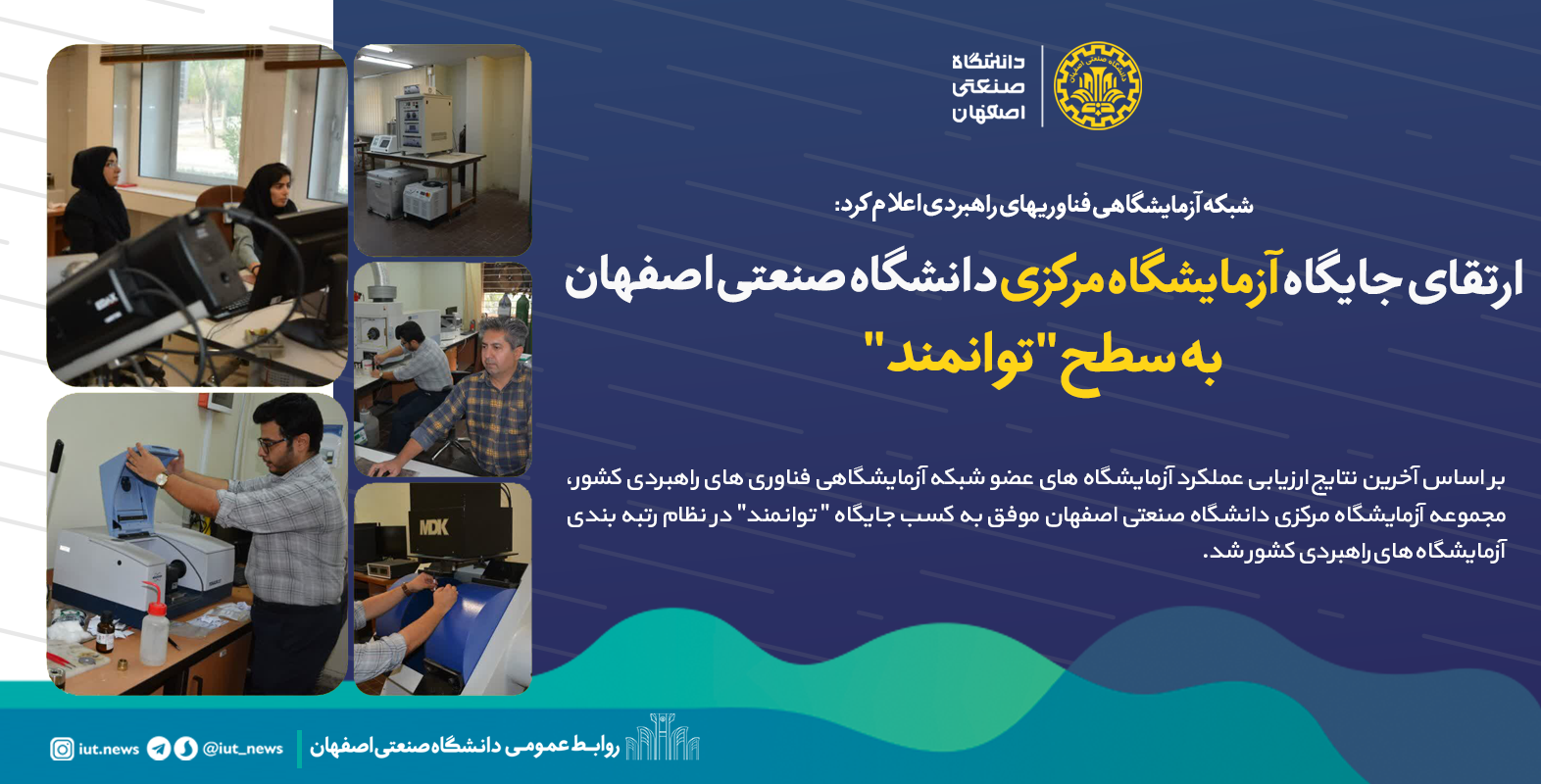 گفتنی است پیشازاین دو آزمایشگاه فناورانه پژوهشکده نانوتکنولوژی و مواد پیشرفته و مجموعه آزمایشگاههای دانشکده مهندسی نساجی دانشگاه صنعتی اصفهان در سطح ' توانمند' قرار گرفته بودند.