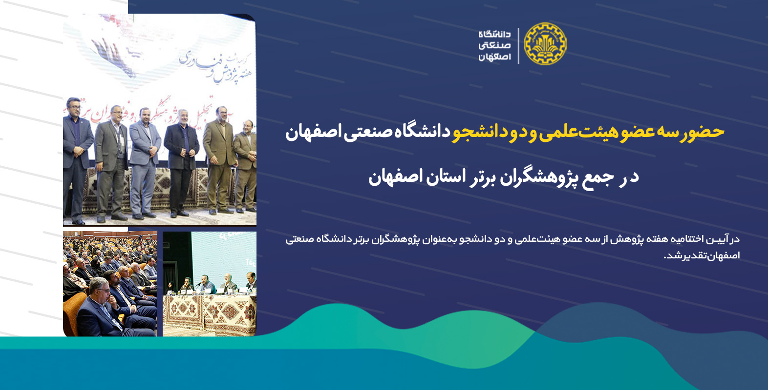 حضور سه عضو هیئتعلمی و دو دانشجو دانشگاه صنعتی اصفهان در جمع پژوهشگران برتر استان اصفهان