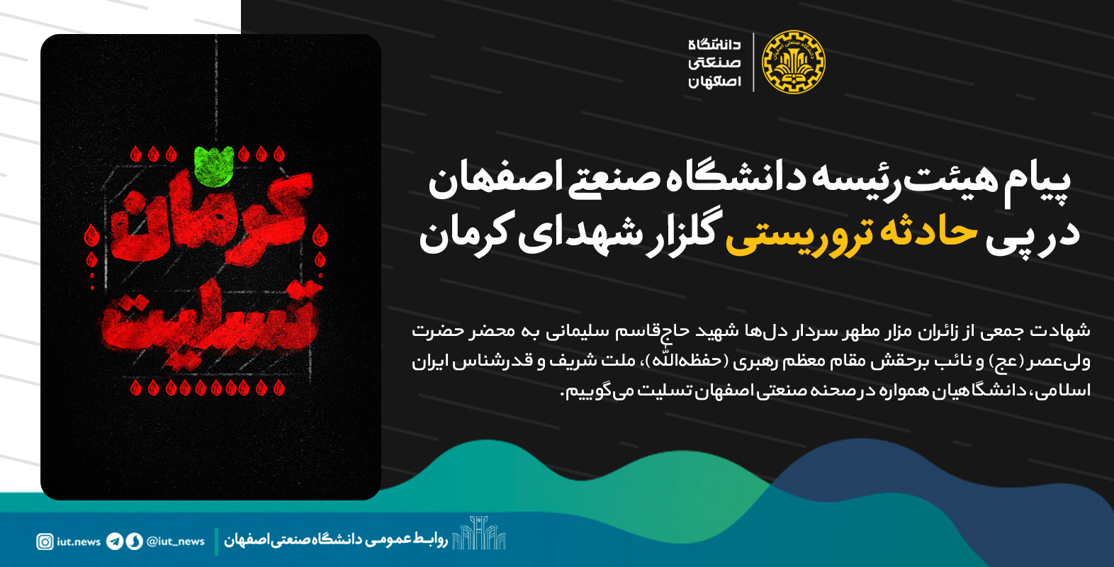 پیام هیئترئیسه دانشگاه صنعتی اصفهان در پی حادثه تروریستی گلزار شهدای کرمان
