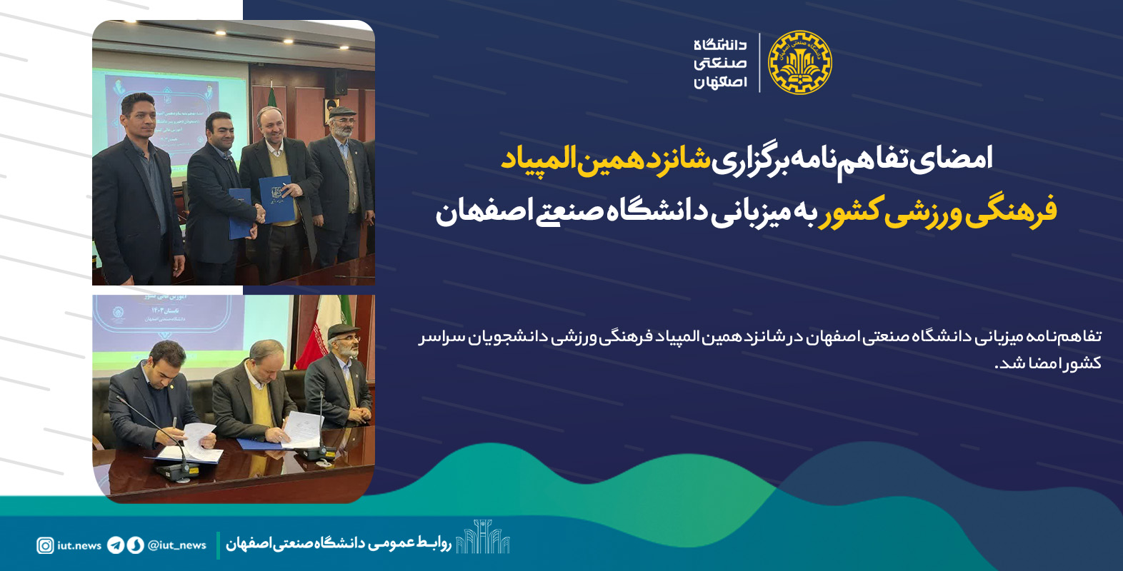تفاهمنامه میزبانی دانشگاه صنعتی اصفهان در شانزدهمین المپیاد فرهنگی ورزشی دانشجویان سراسر کشور امضا شد.