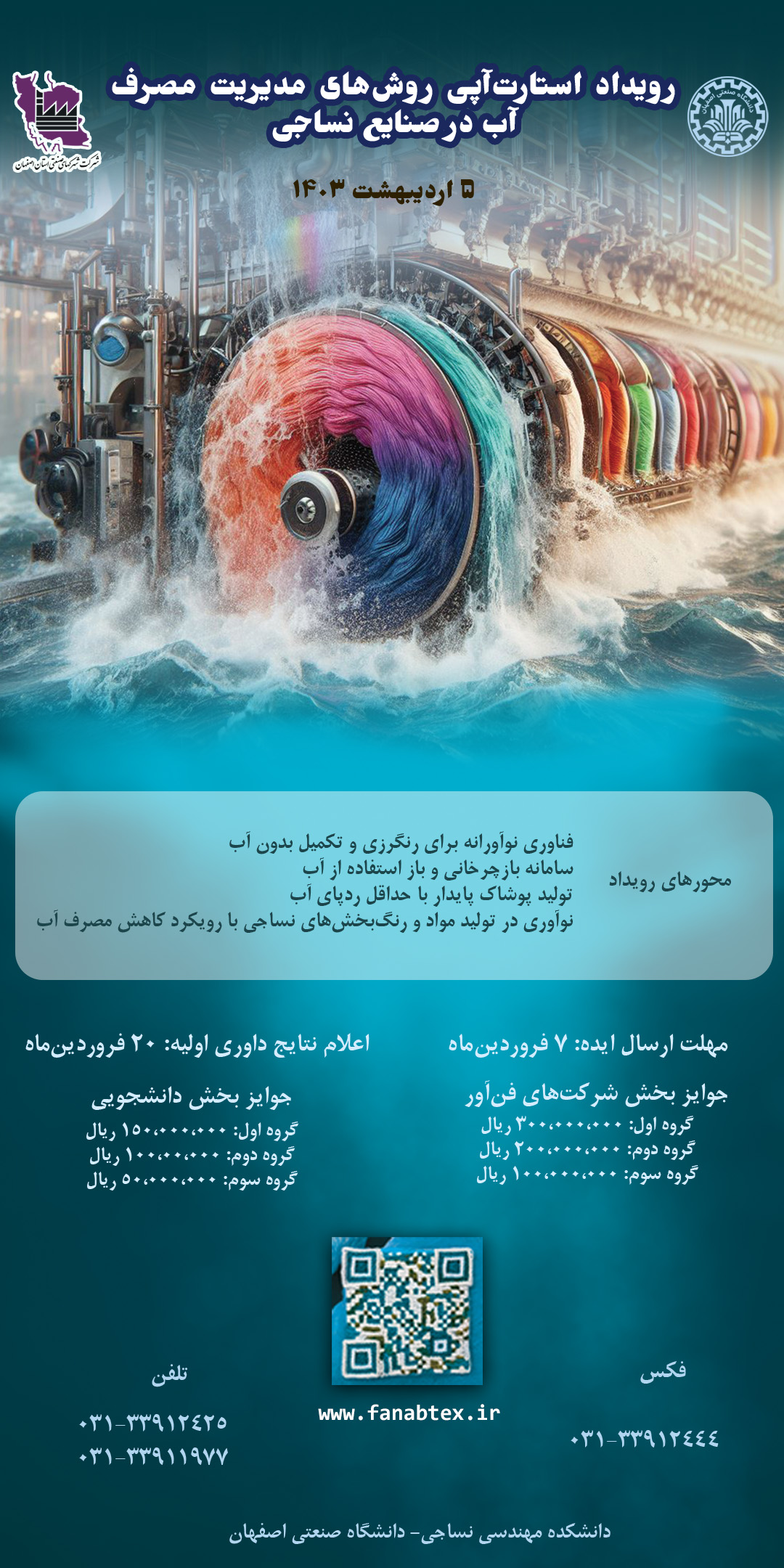 رویداد فنآب با هدف حمایت از ایدههای برتر بهینهسازی مصرف آب در صنعت نساجی در دانشگاه صنعتی اصفهان برگزار میشود.