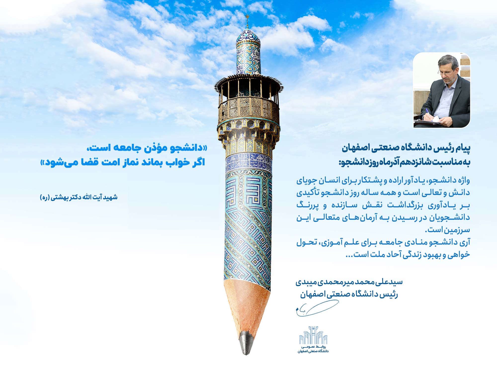پیام رئیس دانشگاه صنعتی اصفهان به مناسبت شانزدهم آذرماه روز دانشجو
