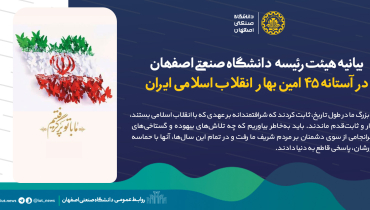 بیانیه هیئت رئیسه دانشگاه صنعتی اصفهان در آستانه ۴۵ امین بهار انقلاب اسلامی ایران