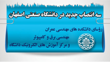 انتصاب رؤسای دانشکده های عمران و برق و کامپیوتر و مرکز آموزش های الکترونیک دانشگاه صنعتی اصفهان