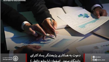 دعوت به همكاري پژوهشگر پسادكتراي دانشگاه صنعتي اصفهان (با منابع داخلي)
